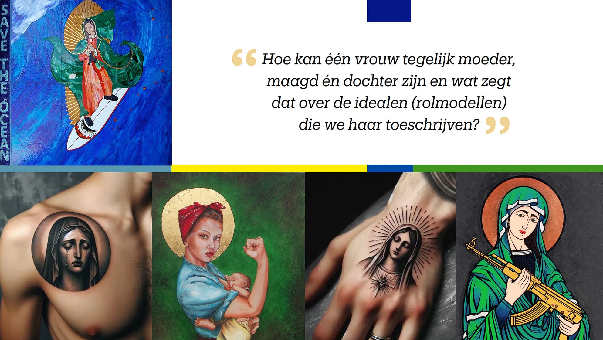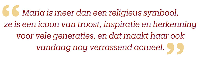 De tentoonstelling laat zien hoe deze rollen aansluiten bij oudere tradities en hoe Maria zich verhoudt tot het verhaal van Eva. Maria als moeder is een thema dat kunstenaars door de eeuwen heen inspireerde. Gelovigen uitten hun dankbaarheid en hoop in ex-voto’s en in Thorn prijkt zij op straatgevels en huisaltaartjes. De Kapel onder de Linden is een sacrale stilteplek met een diepgewortelde geschiedenis. Je kunt Maria ook bekijken door een hedendaagse bril: wat betekent zij in onze tijd?